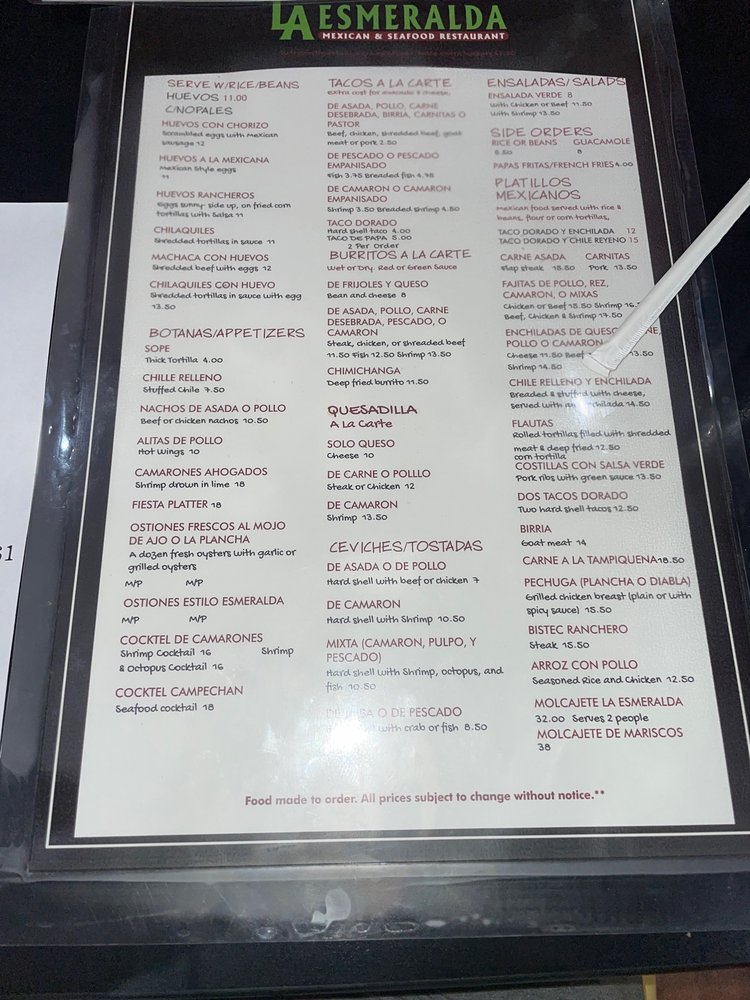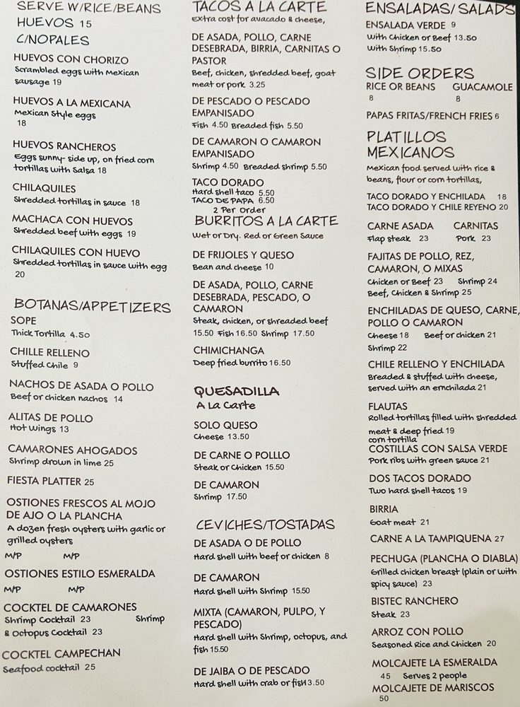 La Esmeralda Mexican & Seafood Menu (Update 2025)